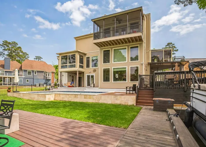 Das Lakefront Retreat With Pool, Hot Tub & Dock Home Montgomery verfügt über geräumige und stilvoll eingerichtete Zimmer, die höchsten Komfort bieten. Jedes Zimmer ist mit modernen Annehmlichkeiten ausgestattet, darunter gemütliche Betten, große Fenster mit atemberaubendem Seeblick und ein privates Bad. Die harmonische Gestaltung schafft eine einladende Atmosphäre, die den Aufenthalt zu einem unvergesslichen Erlebnis macht.